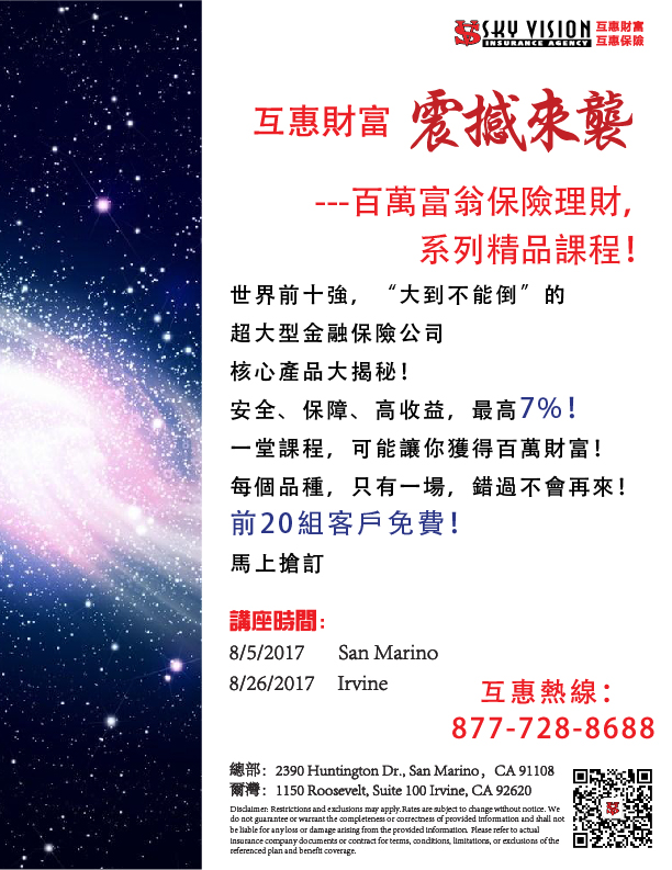 互惠財富,震撼推出–百萬富翁保險理財, 系列精品課程!